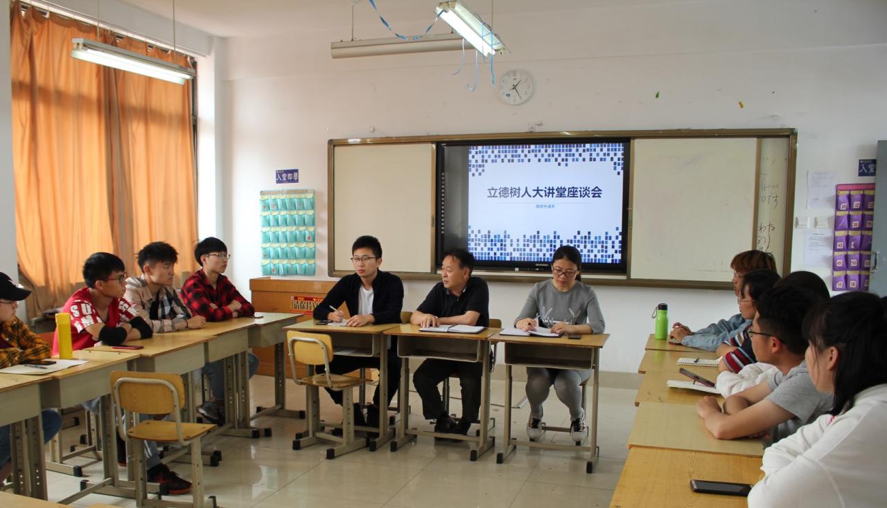 5月27日,商务外语系在B407教室召开立德树人大讲堂座谈会,系党总支书记贾贵贞、副主任刘永美、辅导员路鹏宇以及18级学生代表参加了本次座谈会。