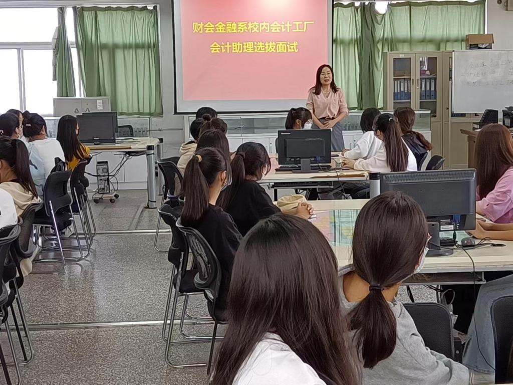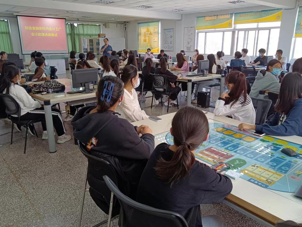 9月29日下午,财会金融系校内会计工厂会计助理面试选拔活动在实训楼举行。近百名学生报名参加,经过角逐,39名2022级会计专业新生成功当选。