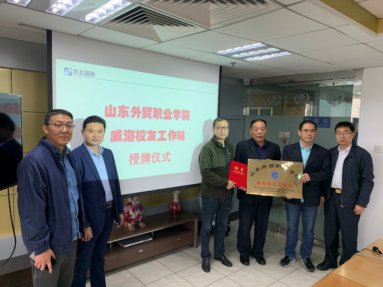 11月5日至6日,学院烟台、威海校友工作站授牌仪式分别在烟台中外运国际物流有限公司、威海方正国际合作有限公司举行。学院招生办公室、校企合作办公室主任王金光、校友办公室主任陈延宁、校企合作办公室李浩、烟台中外运国际物流有限公司总经理(伟德89级外贸运输班校友)邴继业、威海方正国际合作有限公司总经理(伟德89级经理班校友)于春晓及当地部分校友分别参加了授牌仪式。陈延宁代表学院分别为烟台校友工作站站长邴继业、威海校友工作站站长于春晓颁发站长聘书。