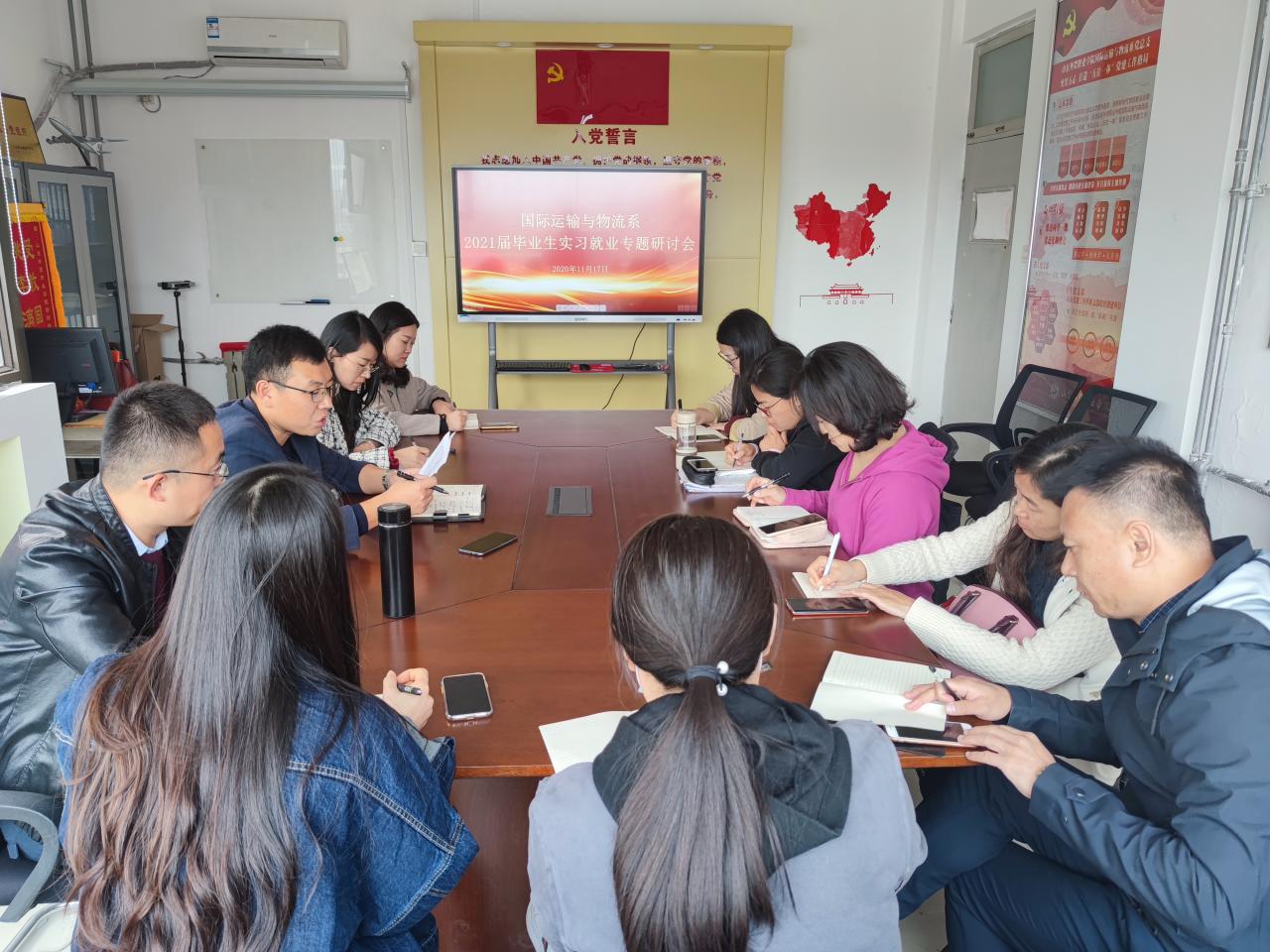 11月17日,国际运输与物流系召开2021届毕业生实习就业专题研讨会,系党总支书记武传伟,学工办主任王思文,全体毕业班辅导员和班主任参加了会议。