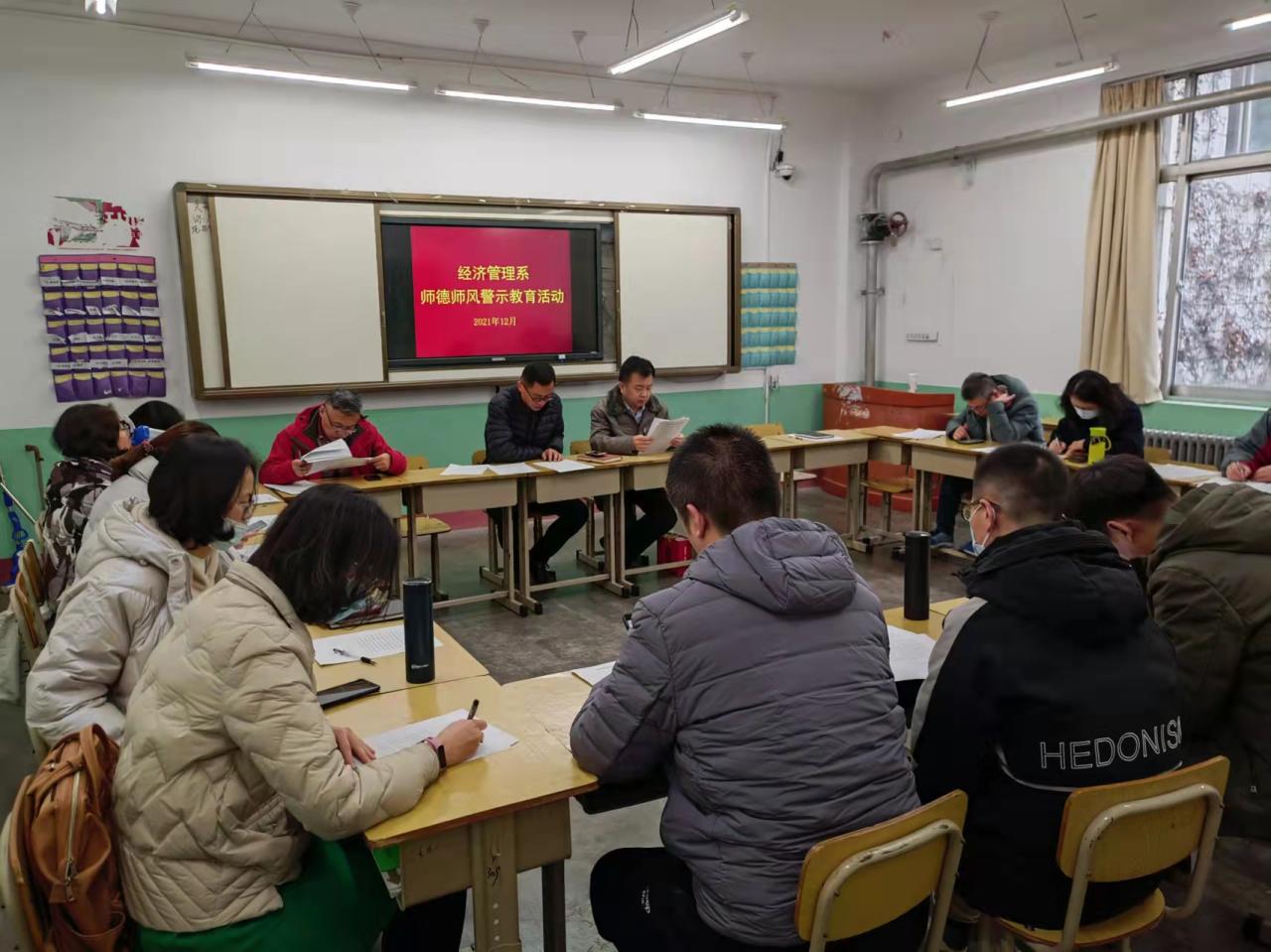 为进一步加强师德师风建设,发挥师德失范问题典型案例警示作用,12月9日下午,经济管理系在1号教学楼309教室开展师德师风警示教育活动,全系教职工参加活动。