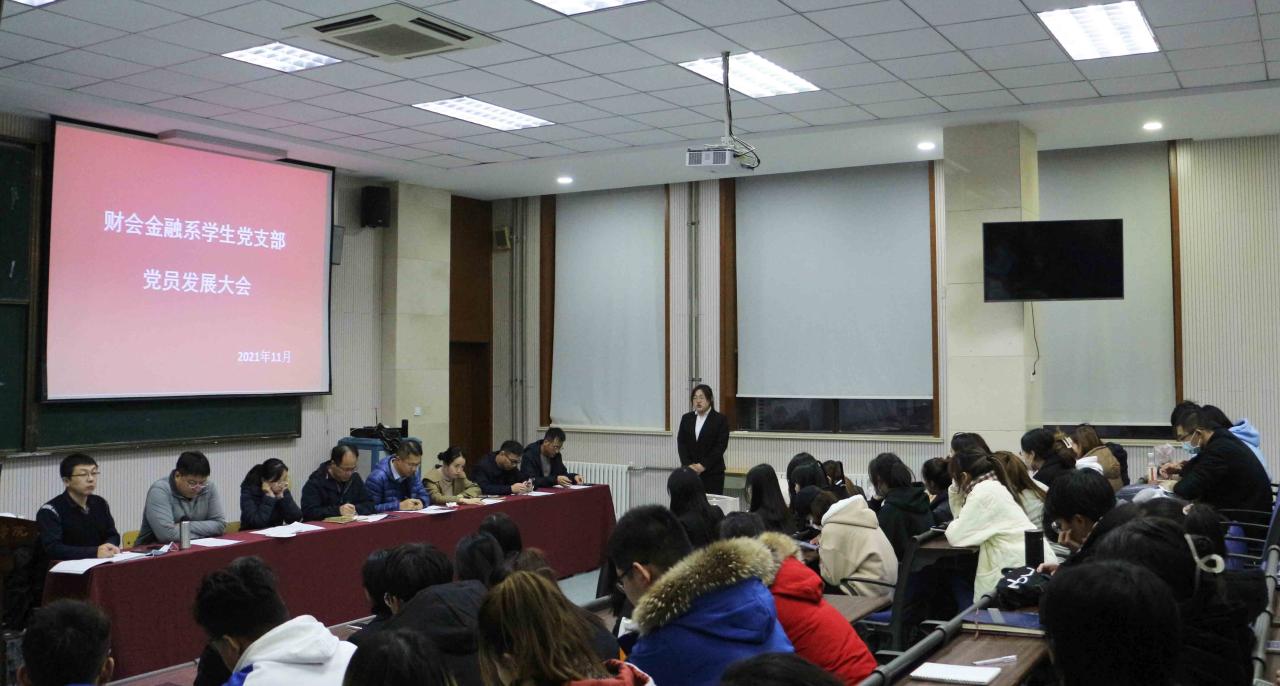 11月26日,财会金融系学生党支部在2号教学楼B1阶梯教室举行党员发展大会,会议由学生党支部书记宋祥勇主持,支部全体成员及10名党员发展对象参加,2019级预备党员、2020级入党积极分子及部分2021级学生列席。