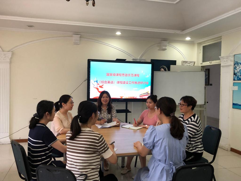 7月11日下午,公共英语部在外语村召开国家级课程思政示范课程《综合英语》课程建设工作推进研讨会。会议由公共英语部主任、课程负责人崔卫主持,课程建设团队全体成员参加。