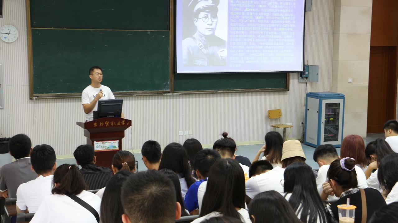 为大力弘扬英雄主义精神,营造崇尚英雄、缅怀先烈、尊崇军人的良好社会氛围,9月24日,学院在2号教学楼B1阶梯教室举办了以“学革命先烈,做红色传人”为主题的讲座,财会金融系辅导员宋祥勇主讲,100余名学生聆听了讲座。
