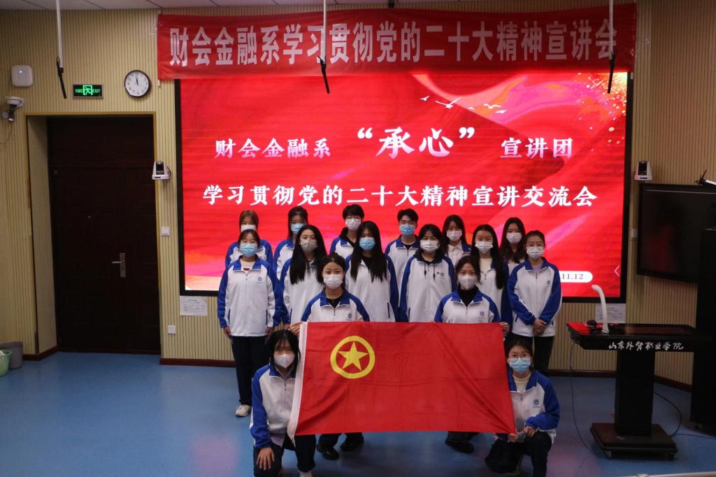 为了学习贯彻二十大精神,更好的团结引领广大青少年紧跟党的步伐,奋进新征程,财会金融系团总支“承心”宣讲团于11月12日下午在第一阶梯教室举办“学习贯彻党的二十大精神”宣讲会,财会金融系优秀团员干部参加了本次宣讲。