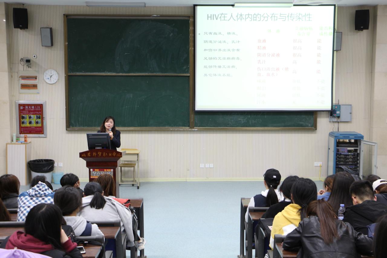 为普及艾滋病防治知识,提高大学生预防艾滋病的意识,增强自我保护能力,4月12日,财会金融系特邀青岛市李沧区疾病控制中心主任贾晓君,为同学们做了一场艾滋病防治知识专题讲座。