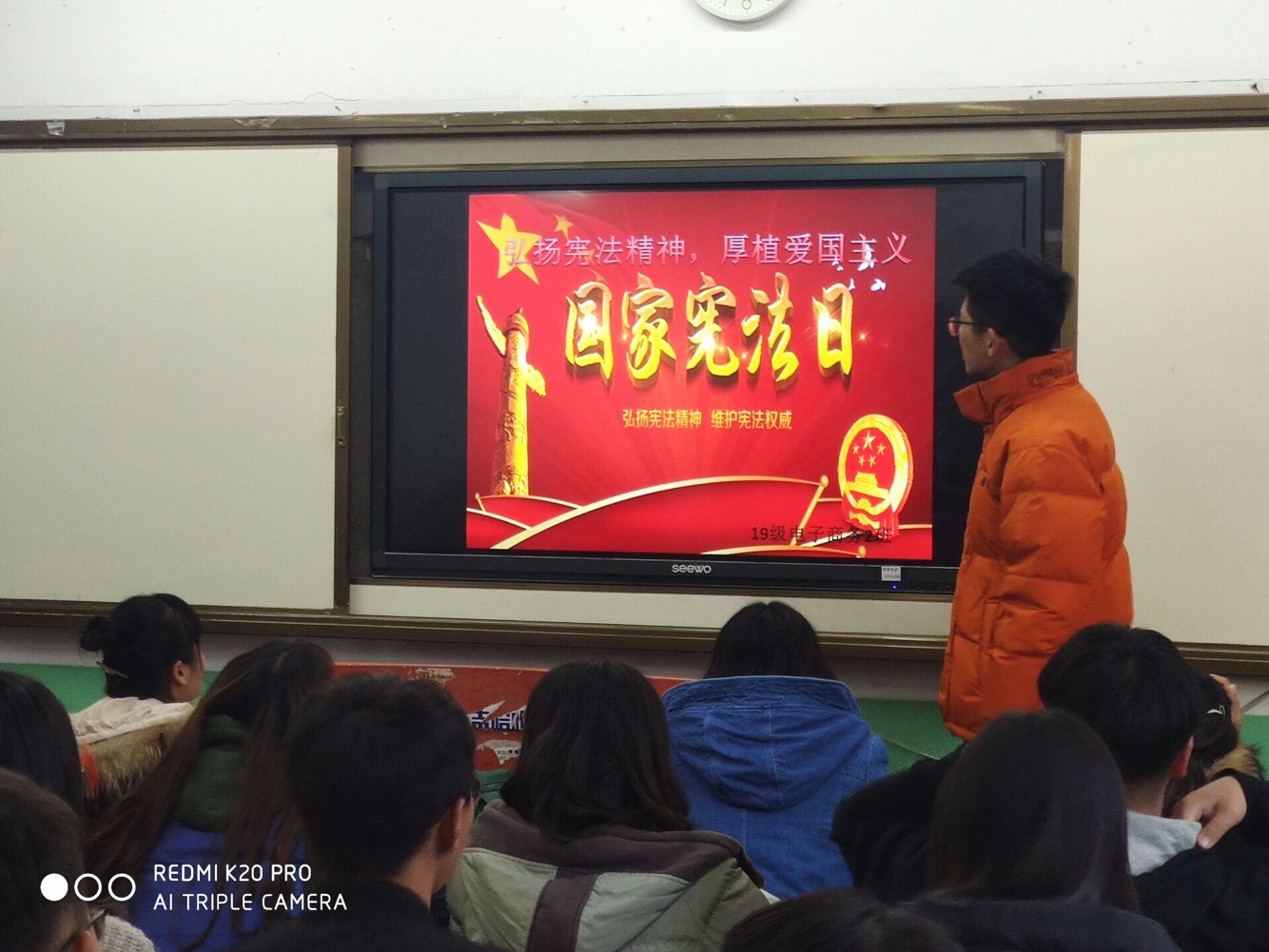 活动中,学院各团支部通过集中学习、PPT展示、观看视频、开展讨论交流会、开展宪法知识问答等形式学习宪法内容,加深对宪法是国家的根本大法,具有最高的法律地位和法律效力等的理解。不少团支部还就全国法制宣传日由来以及意义、为什么要健全宪法实施和监督制度、为什么要建立宪法宣誓制度等问题进行了延伸学习。