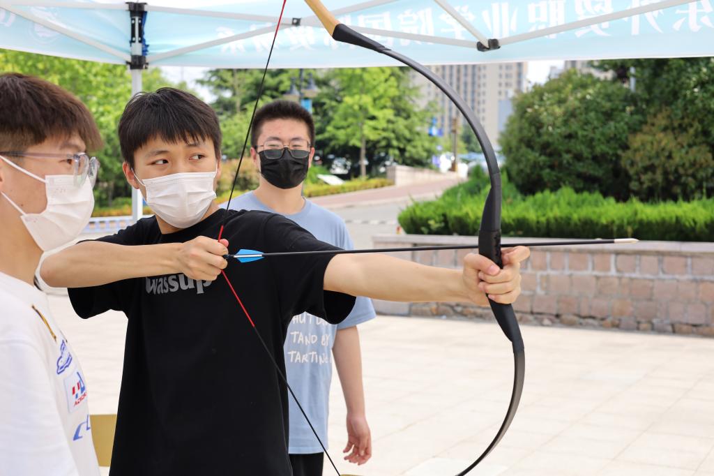 在投壶射箭区,同学们“弓开如满月,箭去似流星”,在愉悦身心的同时,也对“百步穿杨”等耳熟能详的词语有了不同的认识,进而对传统文化产生了浓厚的兴趣。