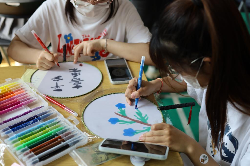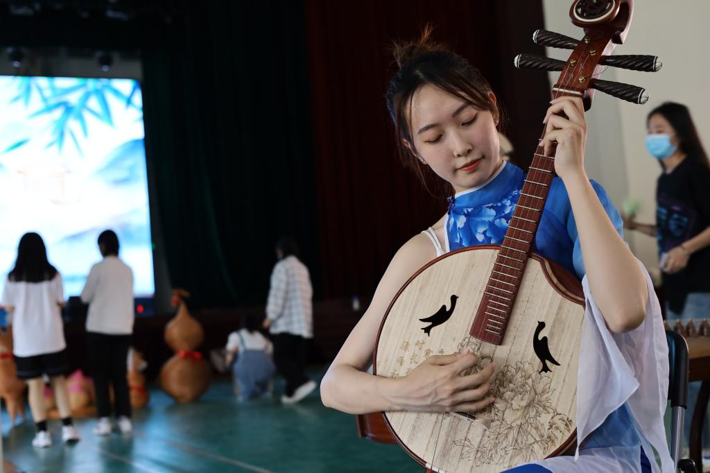 汉服、戏曲、古文、书法是传统文化体验活动不可或缺的几项。现场活动也是氛围感十足,在汉服社、国学社、曲艺社等摊位上,通过汉服展示、戏曲说唱、经典古文诵读、书写体验等多视角、全方位、动静结合的形式,让学生们感受中华传统文化的魅力。