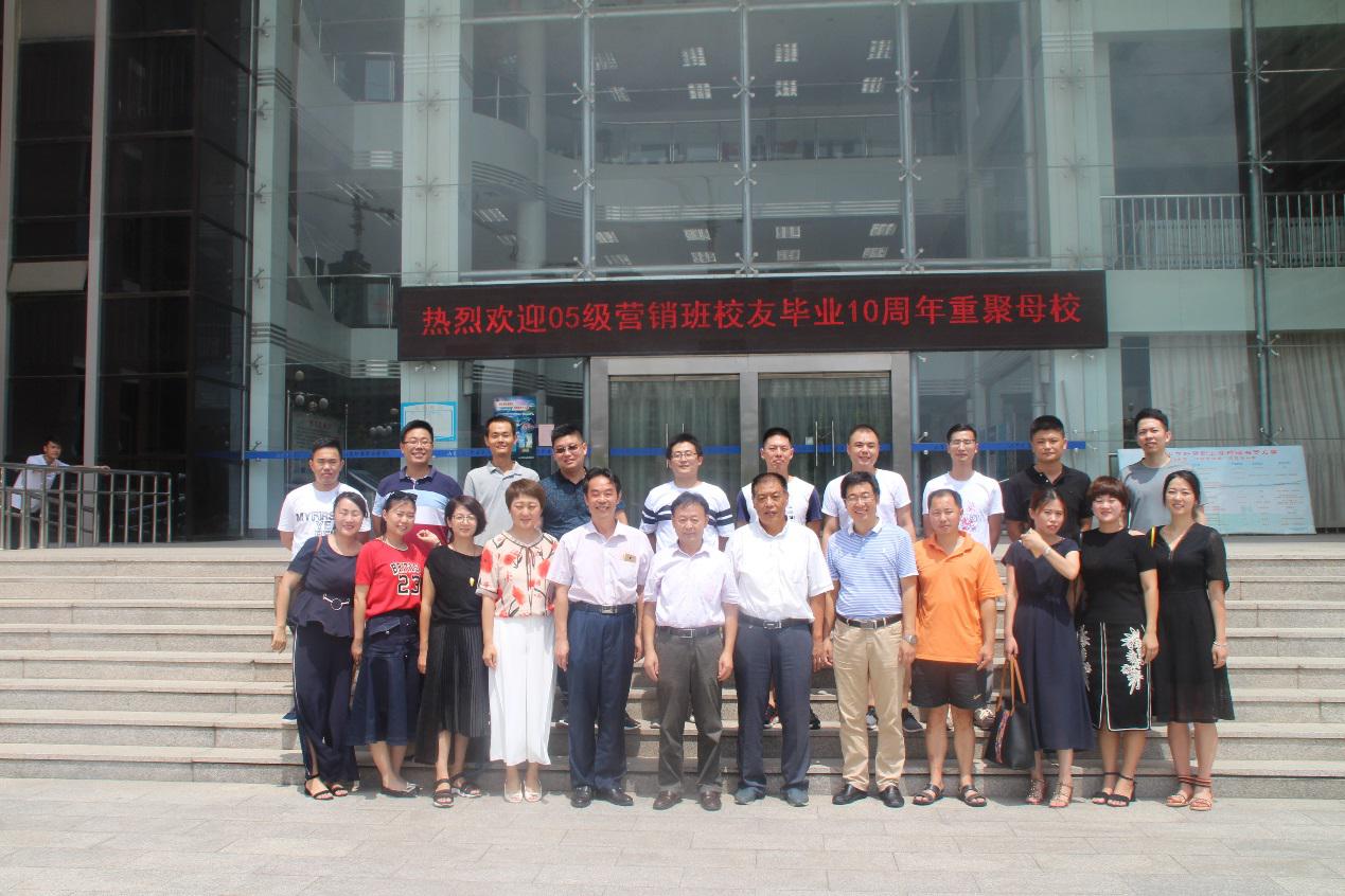 8月4日,伟德05级营销班校友毕业10周年重返母校,在青岛北校区1号教学楼101教室举行了座谈会。原经管系党总支书记贾贵贞、现任经管系党总支书记王金光、校友办主任陈延宁、时任辅导员孙巧奎、教师陈凤强和徐秋杰参加了座谈会。