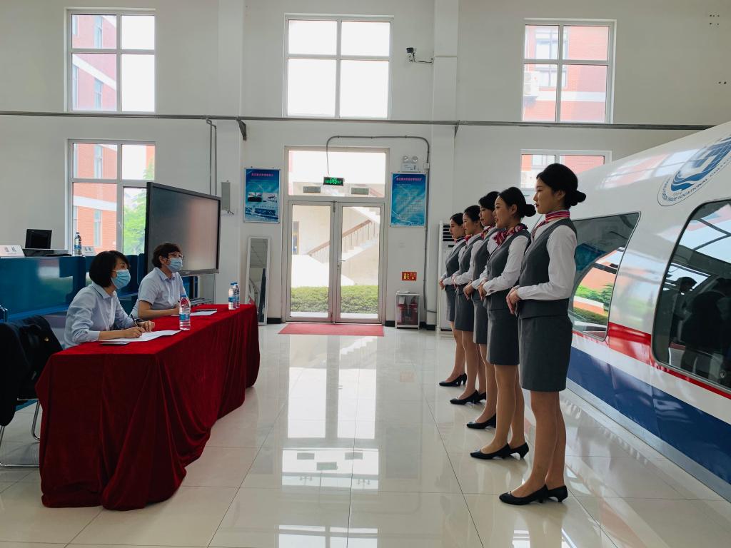 座谈会后,高飏一行对2020级空中乘务专业的40多名学生进行了现场面试和实习生选拔工作。