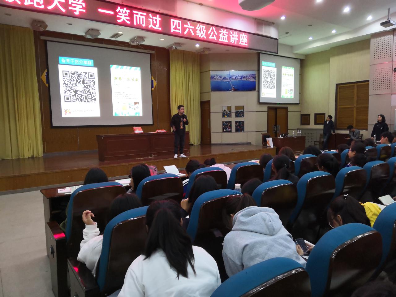 10月17日晚上,图书馆特邀新东方四六级英语学习金牌讲师曹林权在学术报告厅举办了以四六级备考为主题的讲座。全校400余名学生参加了此次讲座,共同聆听了曹林权对英语四六级考试的独特见解。