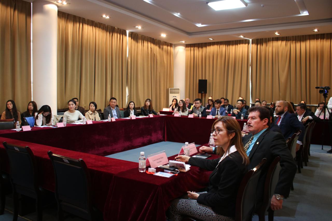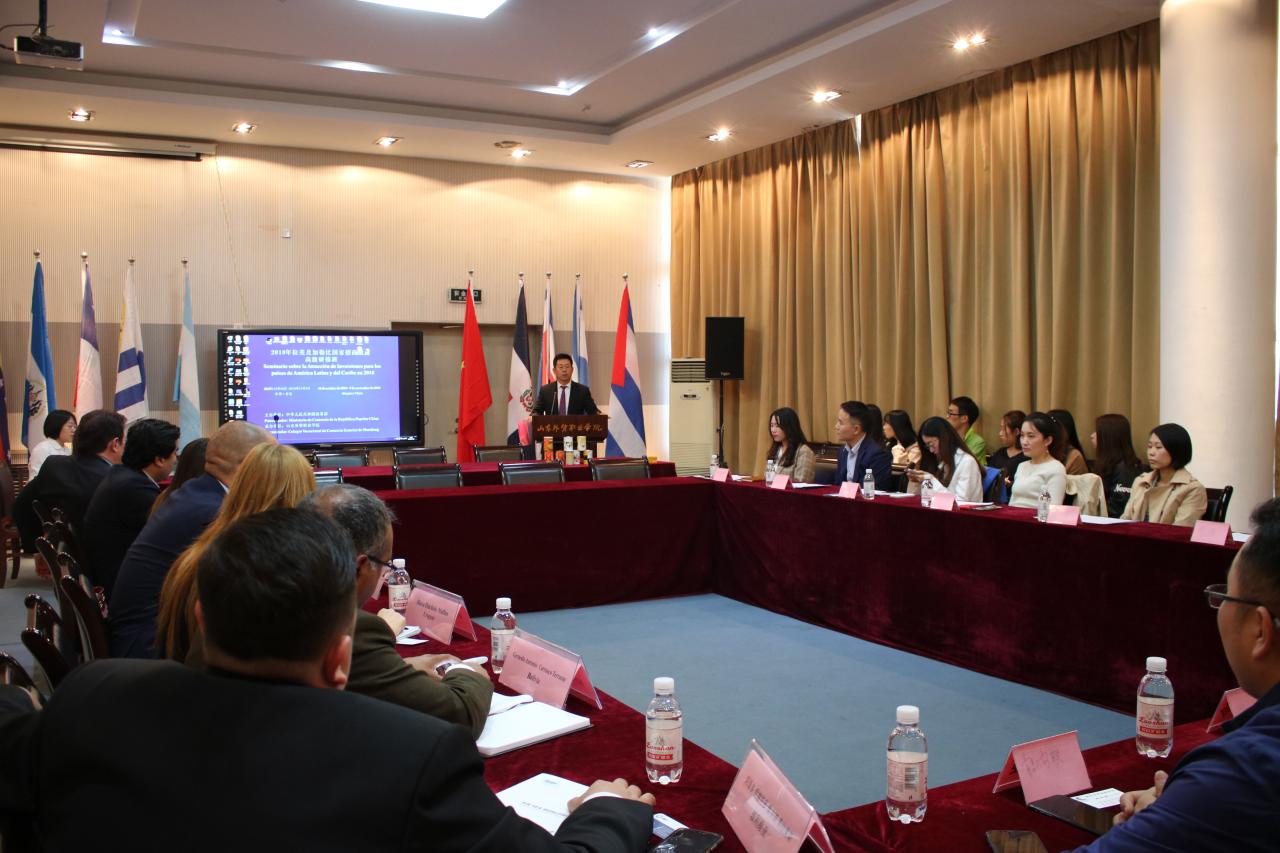 10月26日下午, 2018年拉美及加勒比国家招商引资高级研修班学员与中国企业对接会在伟德图书馆4楼会议室举行。来自10个国家的28名研修班学员与青岛市商业联合会、山东经典重工集团股份有限公司、青岛宏瑞特食品有限公司、青岛高阳国际物流有限公司、青岛鑫光正钢结构股份有限公司、辽宁港捷国际物流有限公司青岛分公司、青岛诗妮发制品有限公司、青岛邦达天原货运代理有限公司、山东润品源食品有限公司、青岛歌华进出口有限公司的等十几家企业代表参加了对接活动。