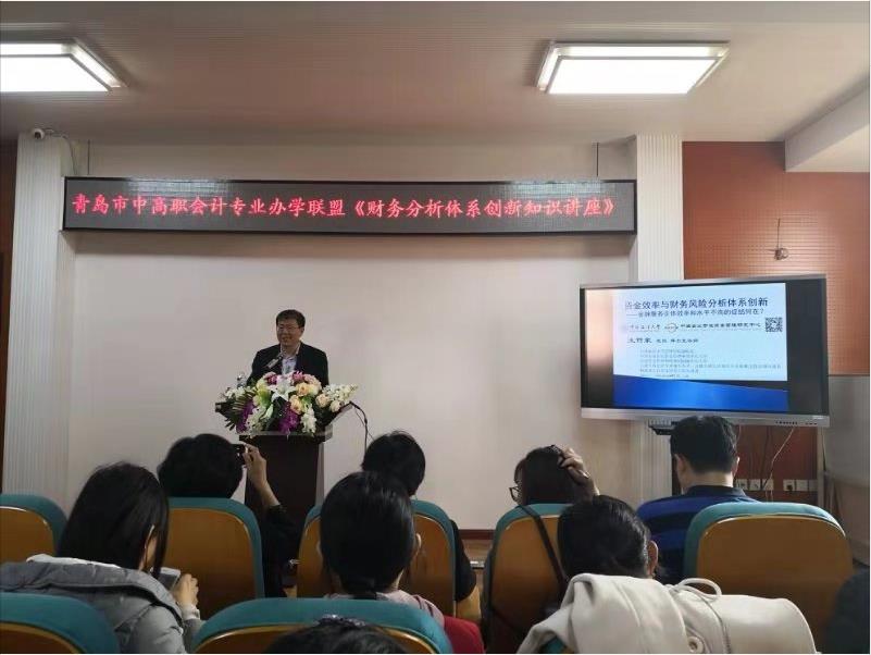 11月21日下午,由青岛市中高职会计专业办学联盟、青岛市财经商贸专业建设指导委员会联合组织的职业院校师资专项培训在青岛华夏职业学校尚德楼5楼会议室举行。参与培训的人员包括青岛华夏职业学校、青岛城阳职教中心以及伟德等办学联盟成员单位的财会金融专任教师及教学管理人员。中国海洋大学管理学院副院长、教授王竹泉为与会人员做了一场精彩的《财务分析体系创新知识讲座》。
