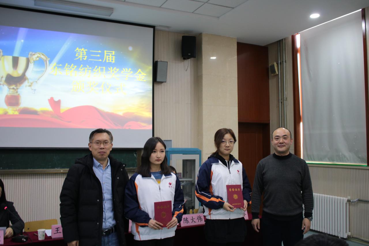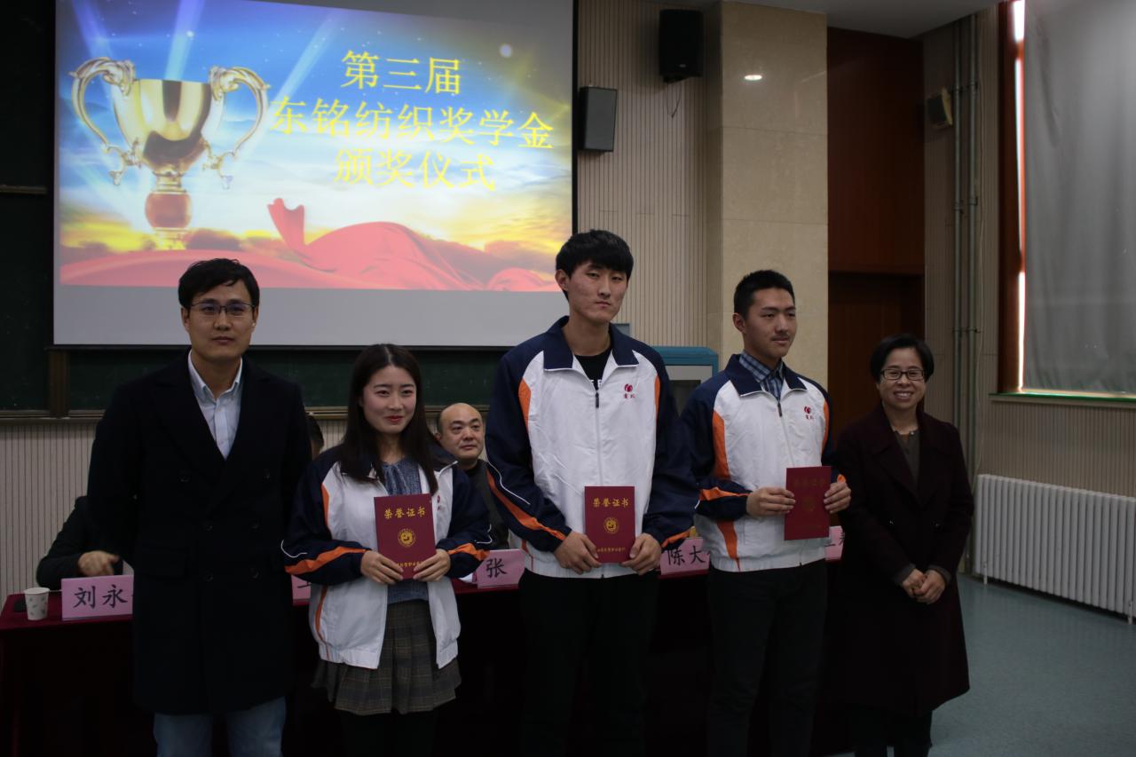 12月13日下午,商务外语系在B3阶梯教室举办了2018年第三届东铭纺织奖学金颁奖大会,青岛东铭纺织进出口有限公司总经理、伟德商务外语系91级校友张鹏,商务外语系主任王应喜、副主任刘永美、商务日语专业带头人陈大伟、教研室主任王正春及部分专业老师和商务日语专业学生参加了颁奖大会,大会由刘永美主持。