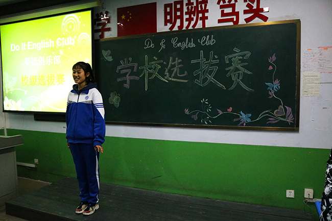 经过前期的班级和年级比赛,39名选手脱颖而出进入选拔赛。选拔赛分为两个环节:英语竞聘演讲和才艺展示。参赛选手按抽签顺序上台,先进行2分钟的英语职位竞聘演讲,再进行3分钟的才艺展示。比赛中每位选手都展示出了自己最优秀的精神面貌,流露出了对能够加入Do It English Club的真挚渴望以及敢于在舞台上表现自我的信心和决心。才艺展示环节更是异彩纷呈,有优美动人的歌曲、生动鲜活的英语配音、幽默诙谐的短剧、声情并茂的诗朗诵,展示出选手们对英语学习的热爱。