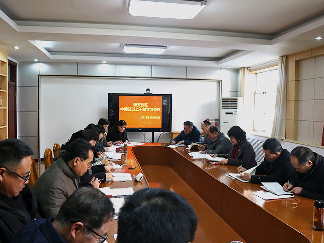 2018年12月28日下午,泰安校区组织中层及以上干部学习会,校区管委会成员、科室负责人和支部书记参加了会议,会议由管委会副主任范维湘主持。