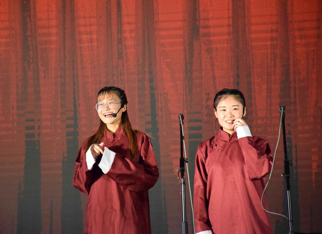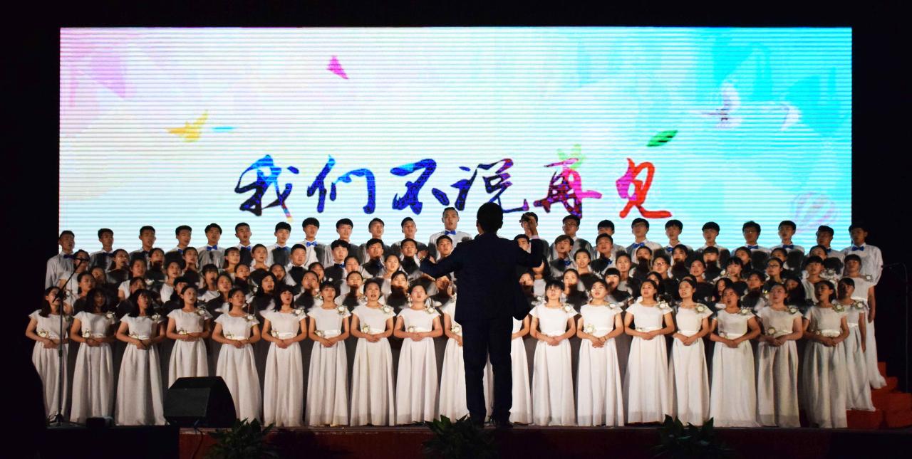 晚会在激情四射的啦啦操开场舞拉开晚会的序幕。在中英文双语主持人的主持下,一个个精彩节目轮番上演。舞蹈《金翅》舞出了异域女郎的婀娜多姿,别有风味;歌曲《By the grace of god 》、《兄弟抱一下》、《约定》轮番上场,或情深义重,或温馨浪漫。由老师代表带来的歌曲《被风吹过的夏天》赢得了同学们的喝彩。相声《忆·念师生》与小品《外面的世界》的内容贴近校园生活,幽默风趣的台词,寓意深远的话题,在引起观众笑声的同时也引人深思。美文朗诵《少年中国说》和《韶华易逝 记忆永存》点燃了同学们的激情,也留住了同学们内心的感动。大合唱《国家》与《送别》的演唱勾起了我们的爱国情怀,同时也表达了对泰安基地的不舍之情。最后播放了同学们精心制作的视频《我们的基地,我们的回忆》感染了全体师生。