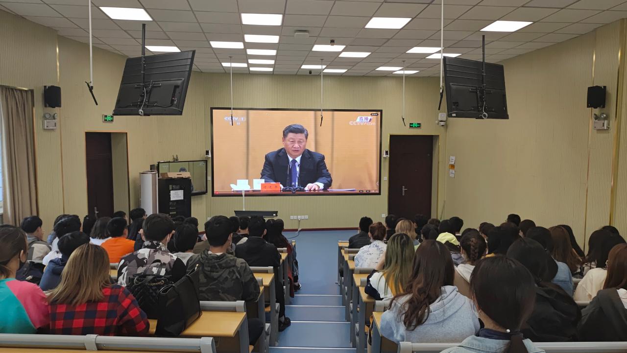 10月23日上午,信息工程系组织部分18级学生干部和19动漫1班和20动漫2班全体同学在1号楼第四阶梯教室观看了在北京人民大会堂举行的“纪念中国人民志愿军抗美援朝出国作战70周年大会”。同学们认真聆听了中共中央总书记、国家主席、中央军委主席习近平在大会上发表的重要讲话。直播结束,总书记的讲话引发了同学们热议,2019级动漫1班徐佳雪发言说道:“听了总书记的讲话后深受鼓舞,我们要牢记先烈们浴血奋战的光荣历史,珍视和平来之不易。”2020级动漫2班金美燕谈到“我们青年一代是祖国的未来和希望,要大力弘扬伟大抗美援朝精神,像总书记说的那样,‘雄赳赳、气昂昂,向着全面建设社会主义现代化国家新征程,向着实现中华民族伟大复兴的中国梦,继续奋勇前进’,贡献自己的青春力量。”