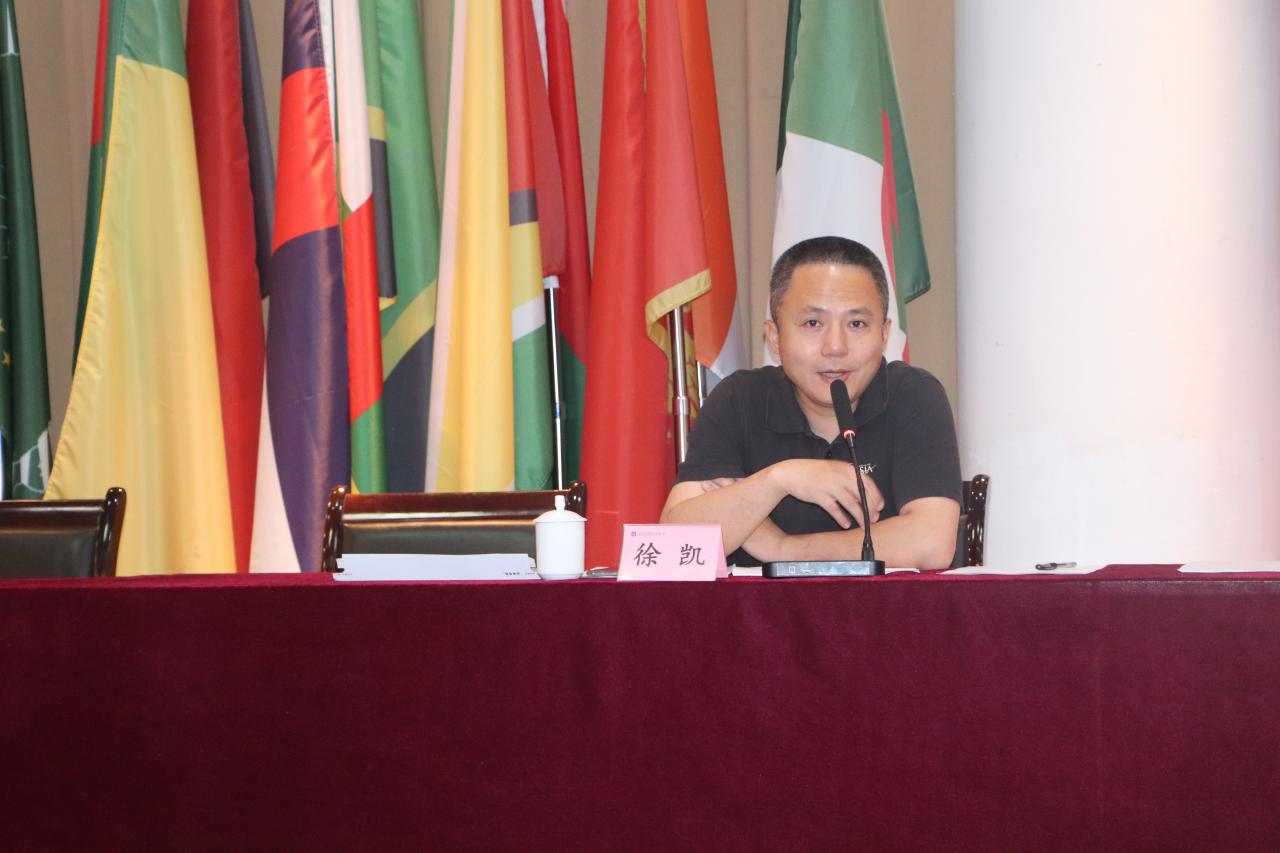 徐凯以“不忘初心牢记使命,做好援外培训工作”为主题,从国家、承办单位、项目管理人员等不同层面详细阐述了我国援外培训工作的现状及重要意义。他介绍了援外培训工作现状,然后解释了援外培训的“初心”是帮助广大发展中国家脱贫致富,并强调全体援外培训工作者要统一思想,始终坚持将“初心”作为援外培训工作的重心,为构建人类命运共同体贡献力量。他通过列举真实工作案例,对伟德在团队建设、项目管理等方面的具体工作提出了指导性意见。他指出,援外培训工作者应多总结、找亮点,制定标准化工作流程,提高自身素养和能力。