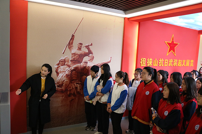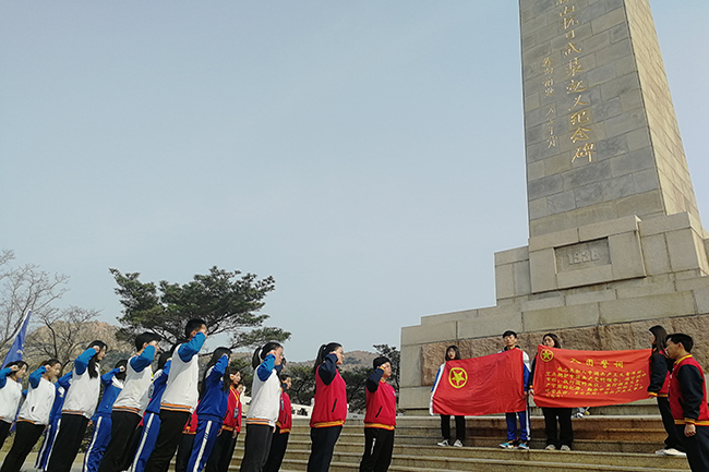 在徂徕山抗日武装起义纪念碑前,同学们庄严肃立,面向团旗,重温入团誓词,并一同瞻仰了纪念碑,表达对革命先烈的崇敬和缅怀之情。随后,同学们步行来到徂徕山抗日武装起义展览馆,在讲解员的讲解下,详细了解徂徕山抗日武装起义的革命历程和历史意义,聆听了革命先辈们可歌可泣的事迹和舍生忘死的壮举。徂徕山抗日武装起义,是抗日战争时期山东影响较大的一次起义,为建立山东抗日根据地奠定了坚实基础,为山东人民抗日战争积累了丰富经验,在中共党史和军史上,都具有极其重要的历史地位。