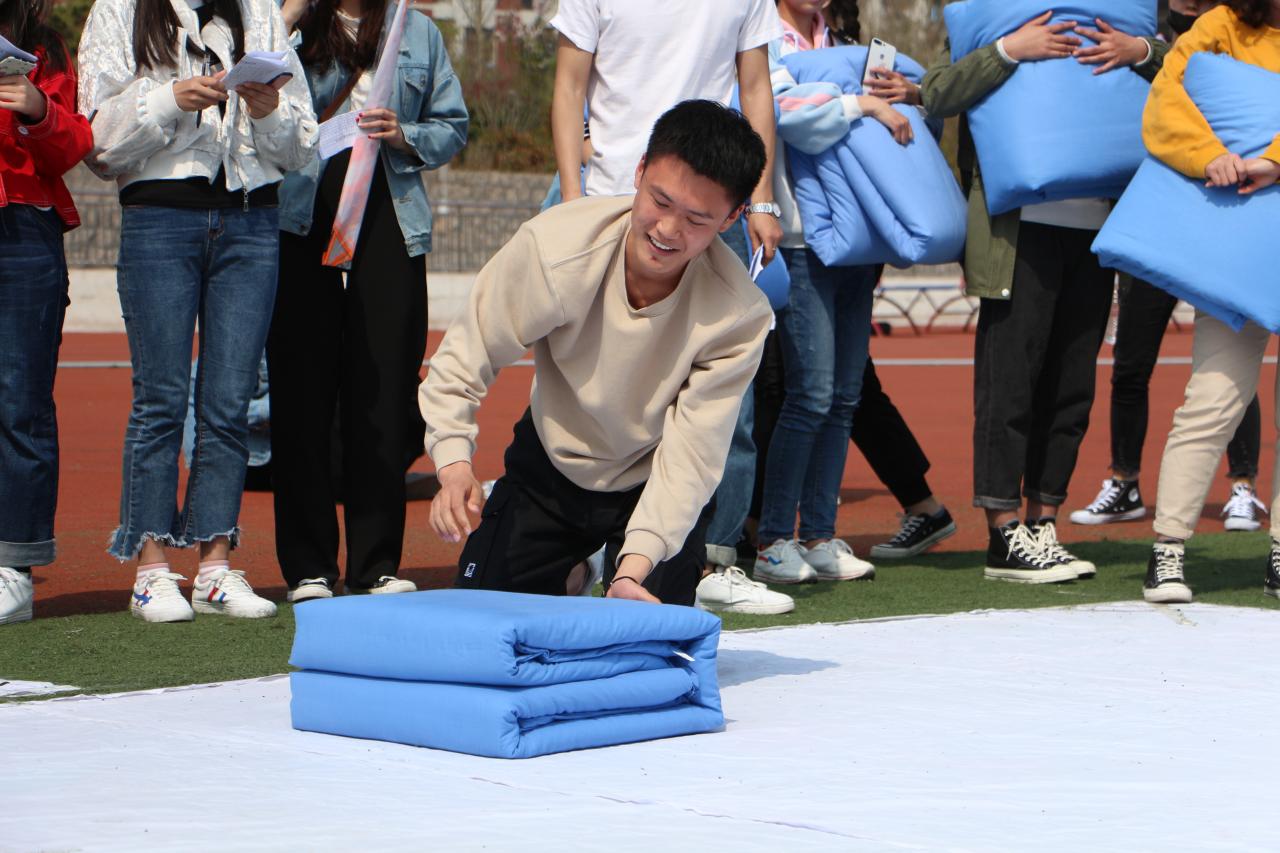 4月18日中午,财会金融系在操场举办“璀璨财金,‘被’添精彩”叠军被比赛。系党总支书记周新征、辅导员王营营及200多名学生参加了此次活动。