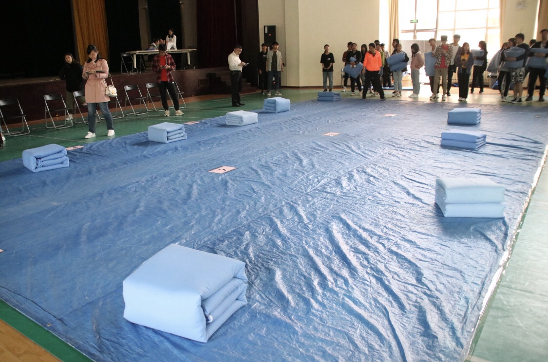 5月9日中午,学生工作部(处)在学院文体中心组织开展了“美德月”叠军被大赛,来自各系的48名选手参加了比赛。学生工作部(处)、各系有关负责老师担当评委。