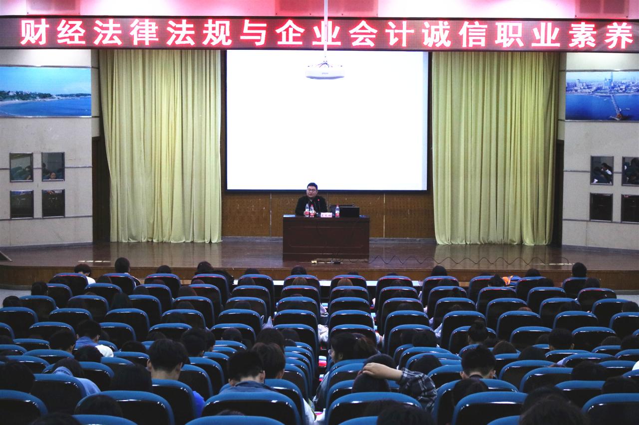 5月10号中午,应财会金融系邀请,伟德2011届会计电算化专业优秀毕业生王长林在学术报告厅作了一场关于财经法律法规与企业会计诚信职业素养的讲座,2017级、2018级200多名在校生参加了此次讲座。