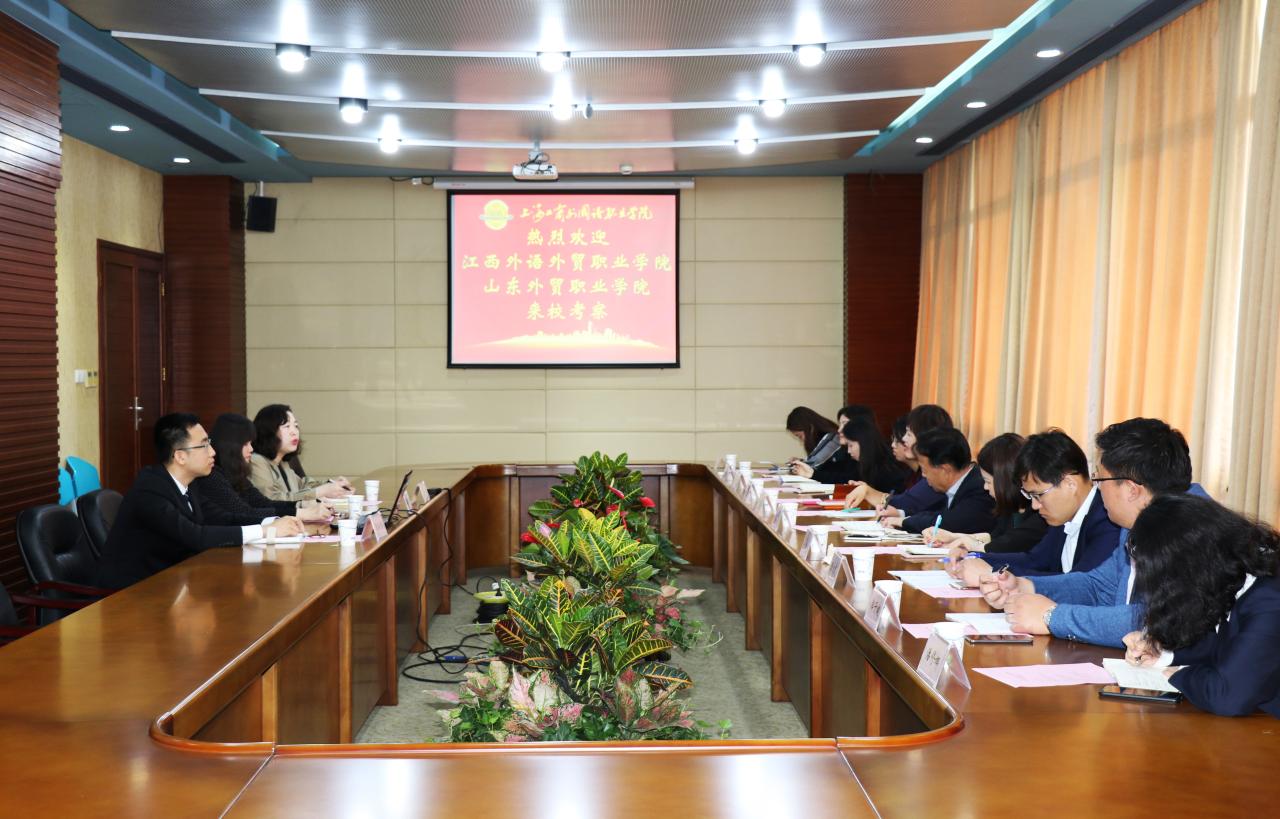 考察团通过座谈会,与两所院校就商务日语、应用韩语和应用西班牙语专业的人才培养方案制定、专业课程建设、课程改革情况、师资队伍建设、产教融合校企合作情况、国际交流合作、毕业生就业创业以及中高职贯通衔接等方面开展交流,并按专业分别进行听课观摩。考察团一行还参观了两个院校的实习实训基地,双方还就实训设施的建设和使用管理等方面进行了交流。