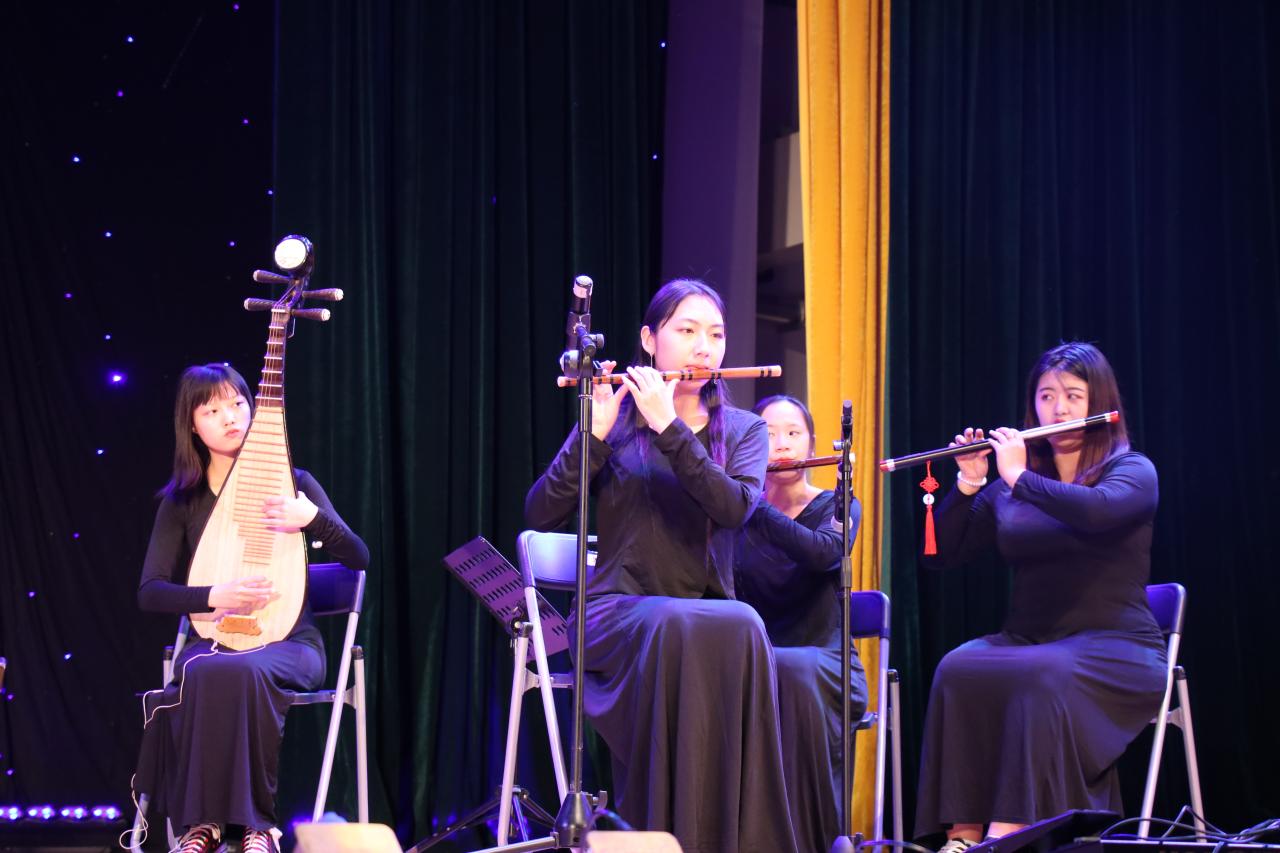 音乐会在清雅乐团的民乐合奏中拉开序幕。正式开始前,孙越等同学献上了《五四赞歌》情景诗朗诵。在第一篇章“青春飞扬,歌唱未来”中,特邀嘉宾国际运输与物流系刘嵩老师和叶盛、孙盈盈、黄敬淇、张文畅、方一静等同学一起,分别带来《诗人的旅途》、《追》、《逆光》、《我相信》、《理想》、《海阔天空》等脍炙人口的流行歌曲,优美的歌声搭配动感十足的旋律引燃全场。在第二篇章“红歌嘹亮,唱响祖国”中,财会金融系、商务外语系和经济管理系的同学们分别带来合唱《强国一代有我在》、《国际歌》和《东方红》等,歌声慷慨激昂、振奋人心;信息管理系孙梦涵、国际贸易系杨培尧、国际运输与物流系伊西汛等同学则分别登台献唱《我爱你中国》、《我和我的祖国》、《我的中国心》等主旋律歌曲,抒发内心对祖国的热爱,引起现场观众的情感共鸣。音乐会的最后是展现社团风采的篇章,来自学院各个音乐类社团的同学们,为观众带来了歌曲串烧、器乐演奏《燃烧岁月》、吉他演唱《夜空中最亮的星》等节目,赢得观众掌声不断,整场音乐会在乐队带来的《让我留在你身边》的音乐中圆满落下帷幕。