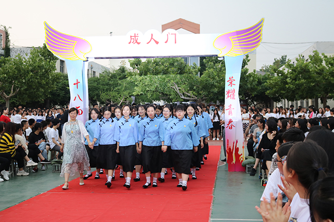 本次活动分为成人礼仪式和主题晚会两个环节。首先,为2016级学生举行十八岁成人礼仪式,各班主任、班级联系领导、家长代表为成人学生佩戴“成人徽章”,并携手通过成人门,共同观看成年学生代表录制的视频《你好18岁》,倾听他们诉说十八年的成长历程和十八岁的成人感悟。随后,朗诵社团奉献了精彩的配乐诗朗诵《18岁起航》。家长代表做了精彩的发言,畅谈父母心声,各班主任向成人同学颁发《宪法》,团总支书记齐雨婷带领成人同学手持《宪法》宣誓。最后,白珣发表了热情洋溢的讲话,他对同学们表示祝贺,向关注学校发展、关爱学生成长的家长朋友表示诚挚的问候,向默默付出、倾心陪伴学生的老师致以崇高的敬意,对成人同学们提出殷切期望,一要律己修德,常怀感恩之心;二要不辱使命,勇于担当责任;三要志存高远,追逐青春梦想。要努力奋斗,用爱心、责任、理想和诚信塑造自己的品行,用勤奋、智慧、自律和奉献书写自己的人生。
