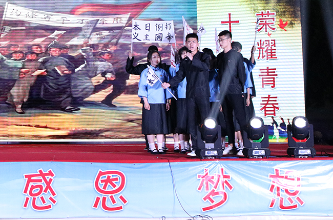 活动第二个环节是以“青春、责任、感恩、梦想”为主题的晚会,同学们通过精心准备的文艺演出,表达了对父母、老师、同学的感恩之情和勇于担当、追逐梦想的坚定信念。校园情景剧大赛获奖作品《感恩的心》倾情演出、感动全场;话剧《时代穿梭》带领观众仿佛穿越时空,回到1919年,回忆那段波澜壮阔的历史时刻,以当代青年的激情与担当演绎青春风采,传承五四精神,纪念五四运动100周年;学生业余党校的学员们合唱红色经典《我们走在大路上》、《中国,中国,鲜红的太阳永不落》,在“七一”来临之际,献礼党的生日,祝愿祖国繁荣富强;歌舞表演《青春华尔兹》、《相亲相爱一家人》展现了亲如一家的师生关系;歌曲《船帆》、《不再犹豫》唱出了外贸学子对理想的不懈追求;任课教师代表、班主任和2015级的同学们也通过视频送出对18岁成年学生的祝福,朴实的言语、真情的流露,深深感染了现场的每一个人。整场活动在大合唱《我们都是追梦人》的歌声里圆满落幕,同学们纷纷与老师、家长、同学合影留念,用相机记录“成人礼”这难忘的神圣时刻。