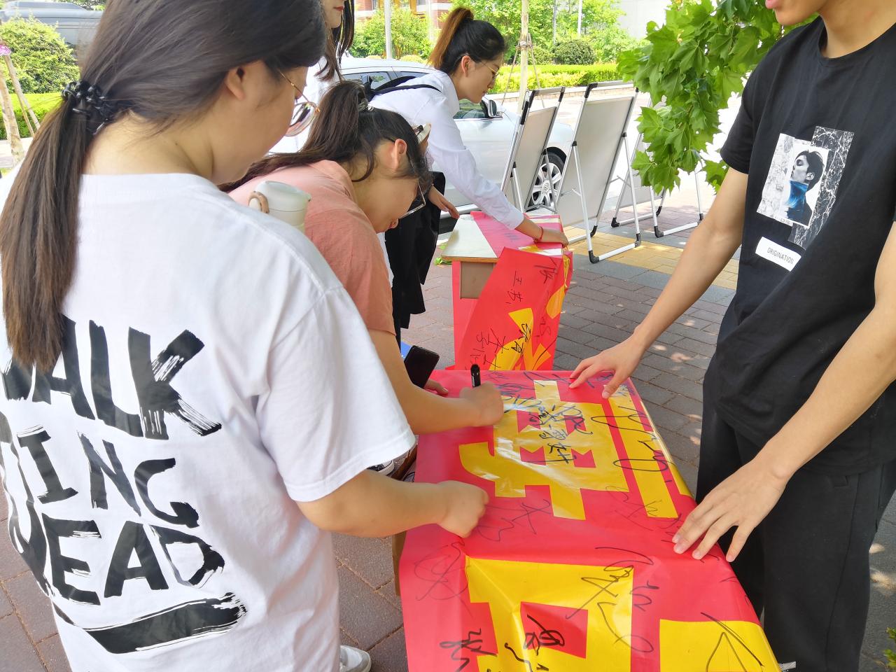 活动中,主办单位在学院主干道悬挂了“珍爱生命,远离毒品”横幅,精心制作了大量专题宣传展板介绍拒毒防毒知识,发放了相关宣传资料,组织了“手拉手远离毒品,齐参与共筑防毒长城”现场签名活动,将禁毒相关知识向同学们作了广泛宣传。