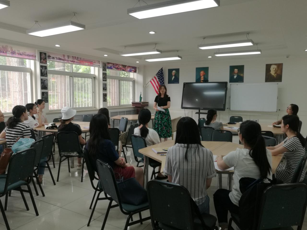7月12日下午,公共英语部在外语村组织召开本学期外聘教师教学总结会。会议由公共英语部主任崔卫主持,副主任玄忠波,综合英语第一教研室主任侯文蕾,综合英语第二教研室主任丁莹莹和全体外聘教师参加了本次会议。