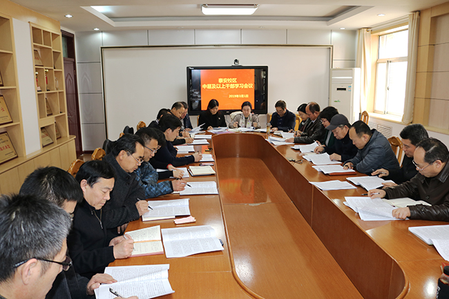 3月1日下午,泰安校区组织中层及以上干部学习会,校区管委会成员、中层干部、支部书记、教研室主任参加了学习会,会议由管委会副主任范维湘主持。