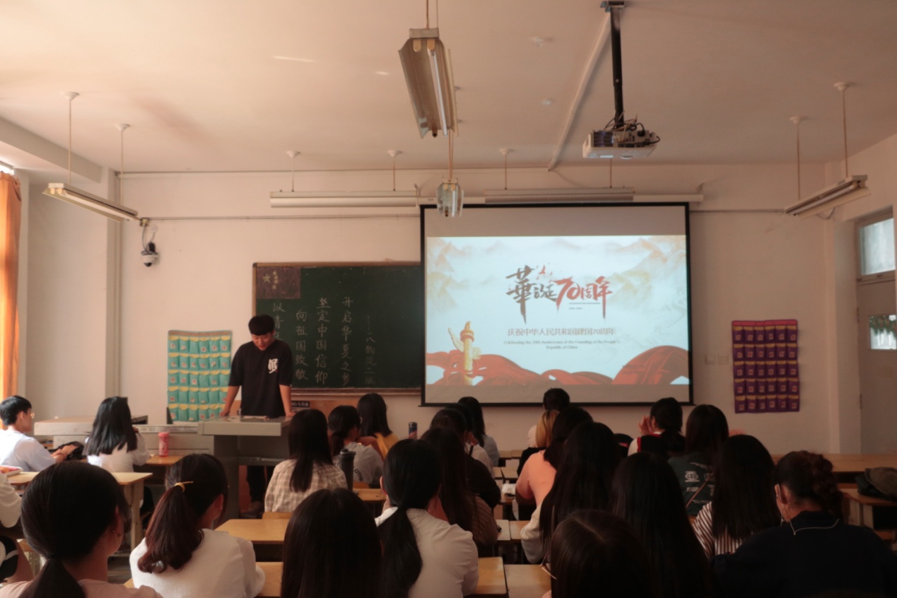 系党总支书记李欣和辅导员老师参加了各班的主题团日,和同学们一起庆祝新中国70华诞,并寄语新时代大学生应树立远大理想、热爱伟大祖国、担当时代责任、勇于砥砺奋斗、练就过硬本领、锤炼品德修养,为实现中华民族伟大复兴的中国梦贡献青春力量。