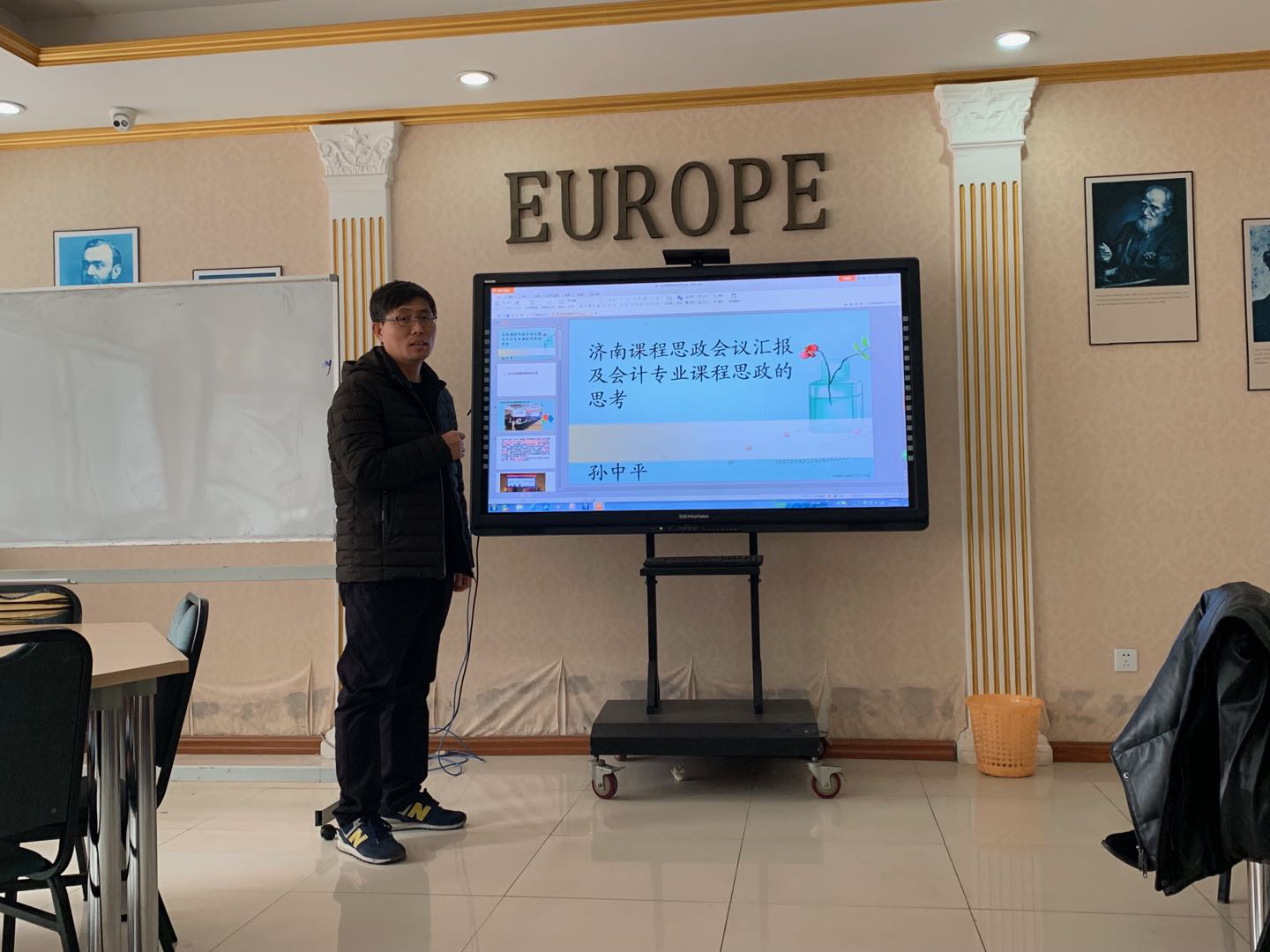 为进一步推进“不忘初心、牢记使命”主题教育,落实教师立德树人根本任务,1月2日下午,财会金融系组织“课程思政”交流会,财金系副主任徐烨主持,全体教师参与。