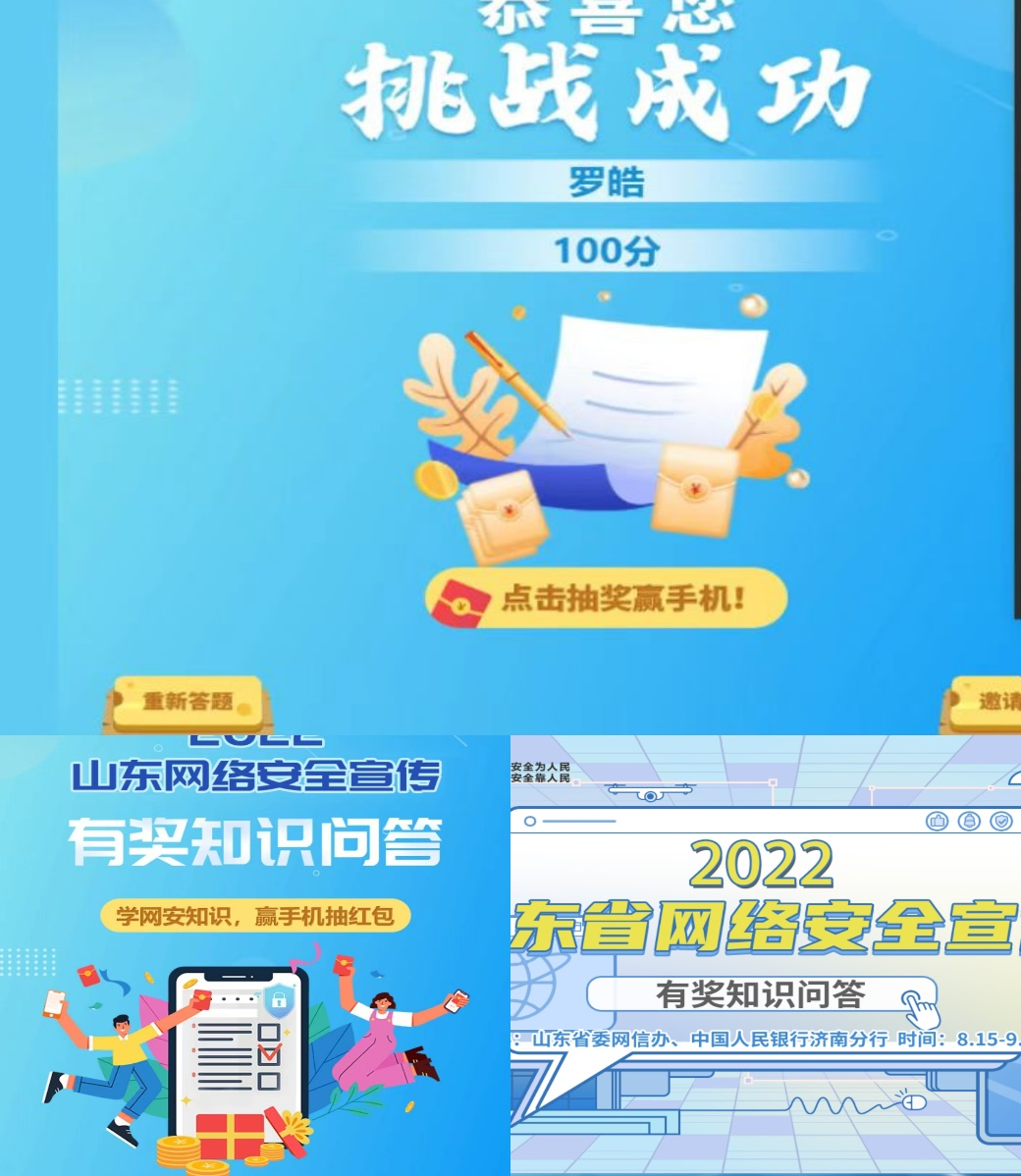 为普及网络安全知识,提高网络安全意识,掌握基本防护技能,筑牢网络安全基础,伟德组织师生参加了2022山东网络安全宣传有奖知识问答活动,取得了良好效果。