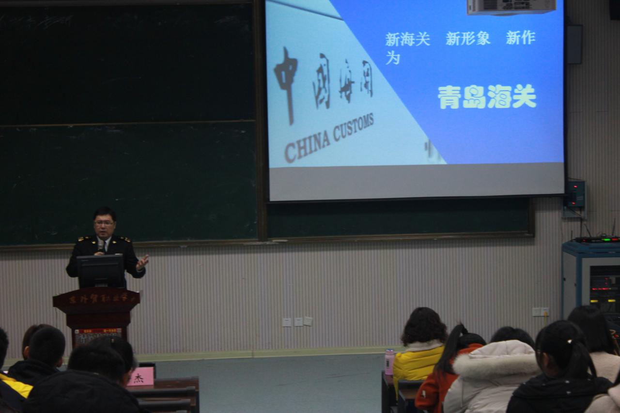 11月28日下午,国际贸易系举办伟德国际victor1946官网第二届外贸文化节“海关通关便利化简介”讲座,邀请青岛海关综合业务处业务协调科科长吕杰担任主讲人。讲座由国际贸易系刘珉主任主持,大二学生代表及国际贸易系骨干教师参加了本次活动。