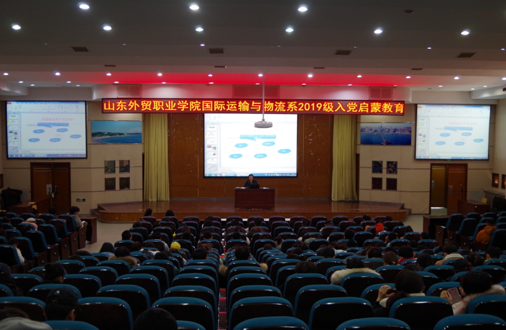 为增强大学生对党的认识,端正入党动机,坚定不忘初心跟党走的信念。11月28日,国际运输与物流系2019级辅导员及全体新生在学术报告厅参加了入党启蒙教育。