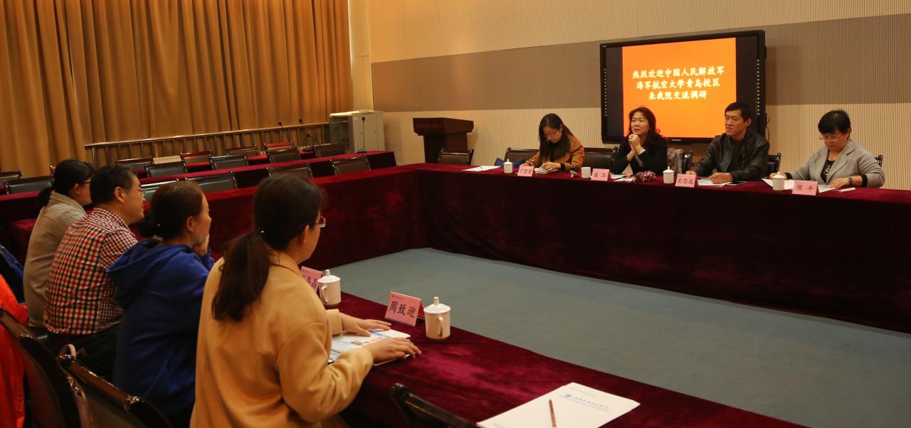 11月28日下午,中国人民解放军海军航空大学青岛校区航空工程基础教研室副主任王晶晶、副教授陈维军等一行四人来伟德交流调研,公共英语部主任崔卫、副主任玄忠波、综合英语第二教研室主任丁莹莹和听力教研室主任陈平参加了交流座谈会。
