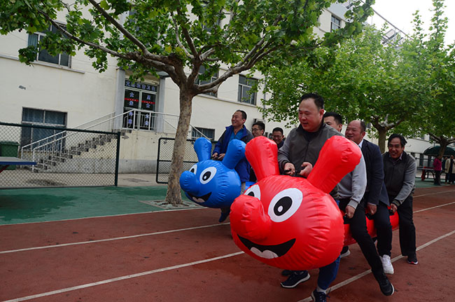 4月28日下午,泰安校区举办了教工趣味运动会。此次教工趣味运动会有立定跳远、袋鼠跳、托球跑、趣味毛毛虫、足球九宫格等集体项目和个人项目。比赛过程中,运动员们发扬团结奋斗、顽强拼搏、乐观向上、锐意进取的精神,尽享运动带来的乐趣。