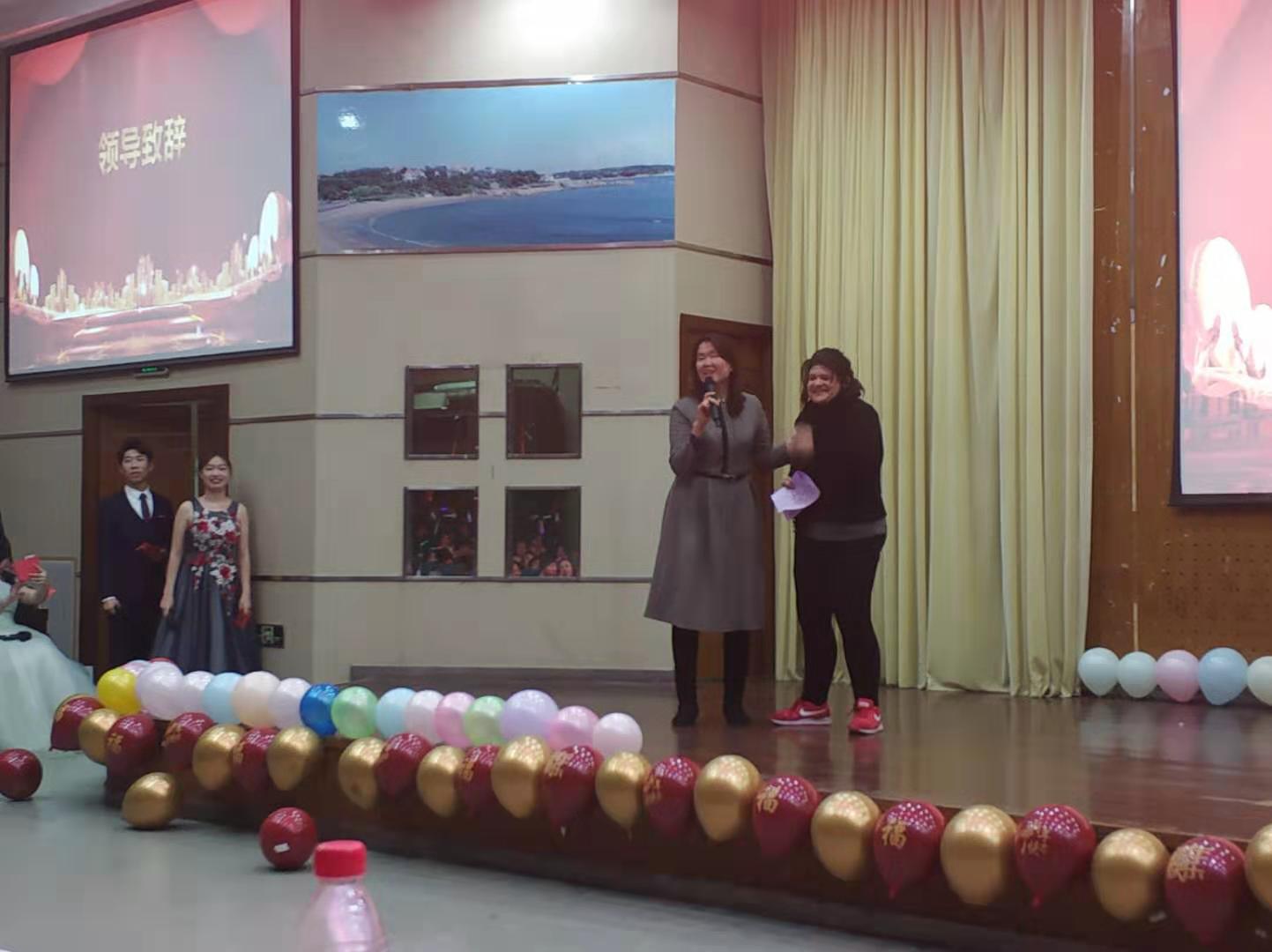 12月19日晚,英语俱乐部在学术报告厅举办2020年新年晚会暨颁奖典礼。公共英语部主任崔卫、副主任王伟、玄忠波,公共英语部教研室主任及部分教师,英语俱乐部指导教师、外教Lily、Rosalie、Michael和俱乐部全体成员及各系学生参加了晚会。