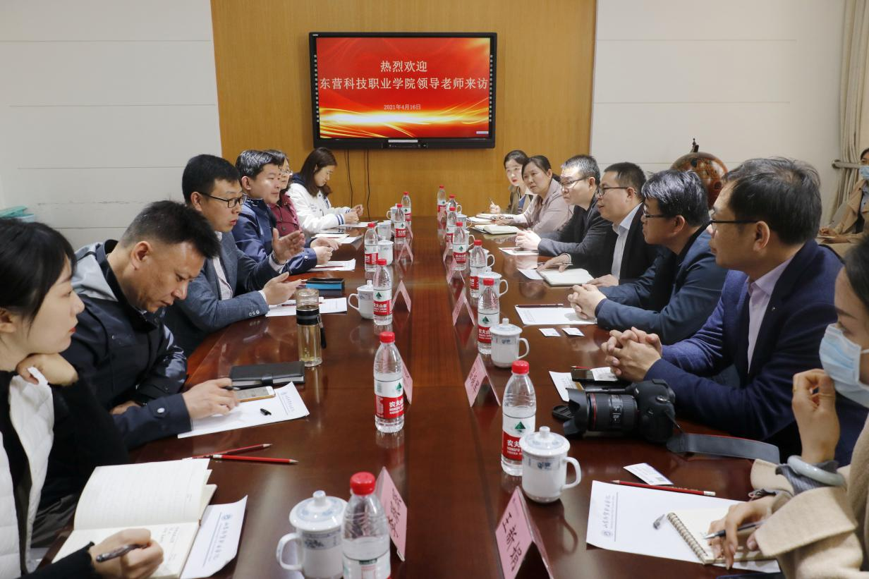 4月16日上午,东营科技职业学院航空旅游学院院长孟金明、经济管理学院院长缪金和一行来学院访问交流。国际运输与物流系党总支书记武传伟、主任刘希全以及相关专业负责人接待了来宾。