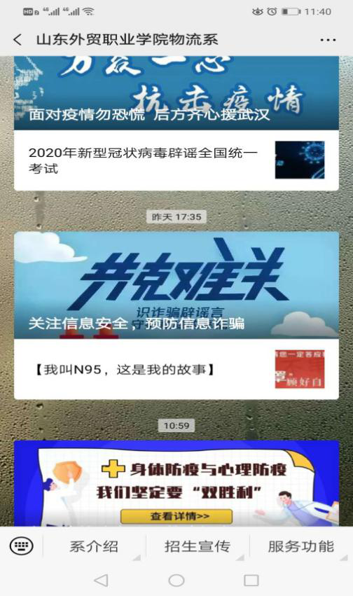 学生干部视频连线、线上宿舍会等快速准确执行“摸排查”任务;微信公众平台设立抗疫专题,每日发布新内容,积极互动,有暖心、有力量。