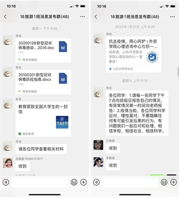 落实防控要求,增强防控意识。利用微信群、QQ群、辅导猫等网络平台,做好疫情防控政策宣传、学习生活指导等工作。