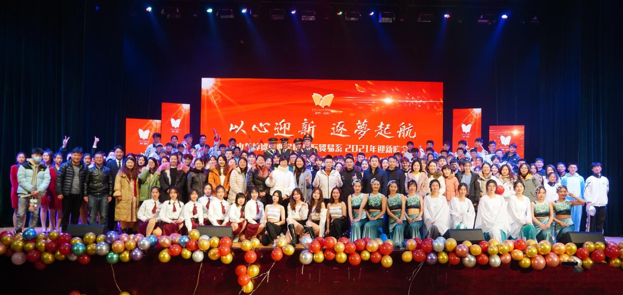 2020年12月30日晚,国际贸易系“以心迎新,逐梦起航”2021年元旦晚会在文体中心举行。公共英语教学部主任崔卫、财会金融系党总支书记孙茂峰、商务外语系党总支书记刘永美、实训中心副主任李飞、学生工作处副处长梁政委、国际运输与物流系副主任兼学工办主任王思文,各系辅导员、班主任、校友企业代表和国际贸易系领导及在校生参加了晚会。