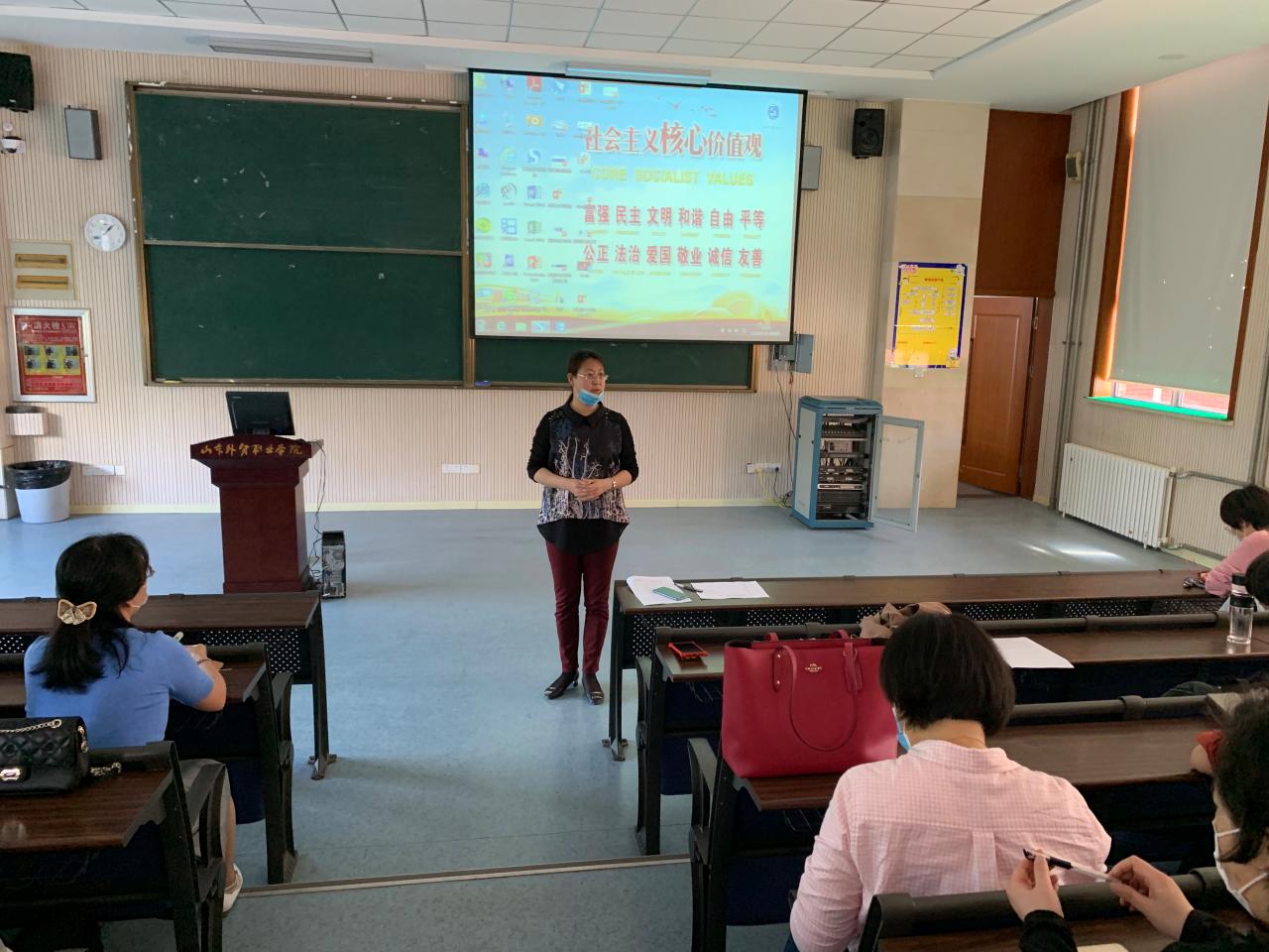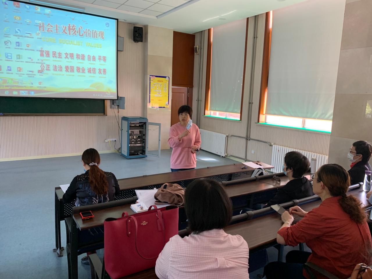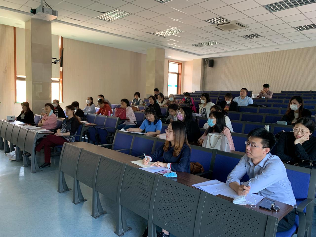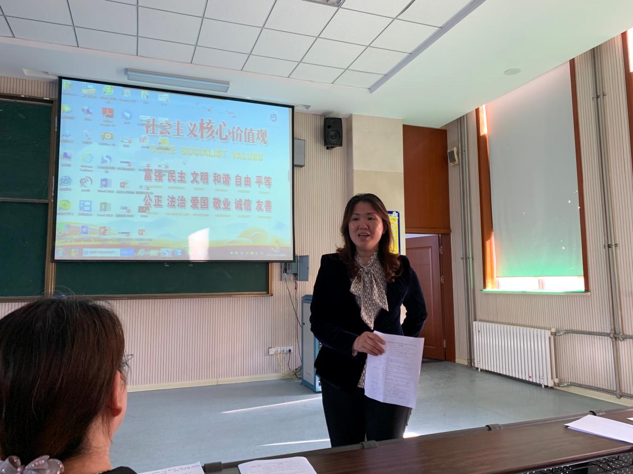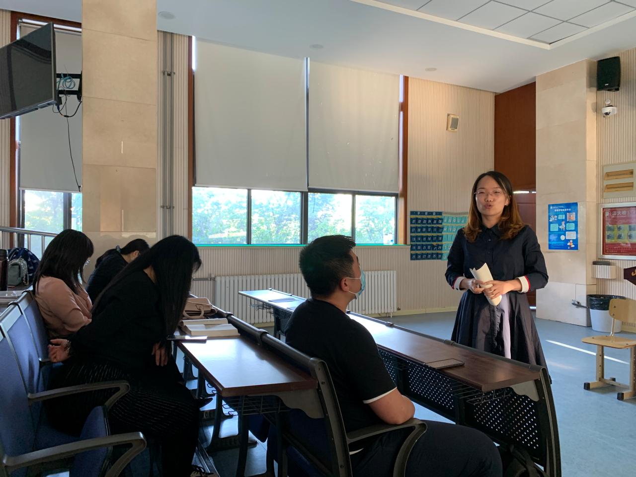 比赛结束后,崔卫对比赛进行总结性点评。崔卫曾担任全国教师教学能力大赛的评委,经验丰富。她提出,教学比赛应区别与普通教学,比赛既是教学的精炼展示,也是对老师综合素质,信息化水平等的全面考验。各位老师应在展示时,理清思维和结构,力求展示简洁,大方,重难点一目了然。其后,孙智贤也作了教学能力比赛的心得分享。孙智贤曾获山东省教师教学能力大赛一等奖,她总结,教学比赛与传统教学不同,侧重点也不一样。各位老师应该仔细研究教学比赛特点,在比赛中注意理清主线,在课堂中适当留白。多给学生留下思考的空间,培养批判性思维。