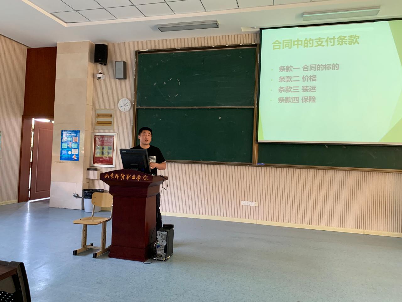 5月28日下午,国际贸易系在2号教学楼A1阶梯教室举办教师教学比赛。本次比赛特邀公共英语部主任崔卫教授、教务处魏龙吉和国际贸易系书记李欣、主任刘珉、骨干教师孙智贤共同担任评委,国际贸易系全体教师参加了本次比赛。