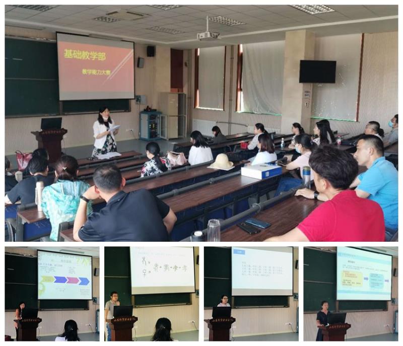 6月11日下午,基础教学部在A2阶梯教室举办教师教学能力比赛,部门高级职称教师、党总支书记、副主任及教研室主任担任评委,全体教师观看比赛。